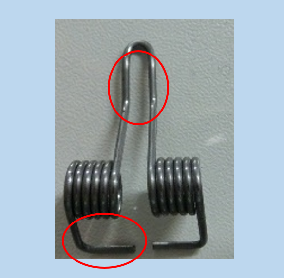 ZF40 フック形状が複雑なダブルトーションばね NFA23 Double Torsion Spring with Complicated HooksZF40ダブルトーション両サイドともに後曲げ加工を行っています ZF40 Bending after cutting (both ends) for W-torsion spring -