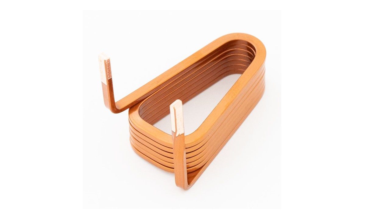 標準トーション機による銅平角線軸巻きアキシャルギャップモーターコイル Copper Flat Wire Axial Gap Motor Coil by Standard Torsion Machine